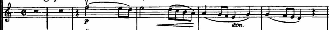 This is far from a normal “theme” but more of a composite rhythmic structure. Wolff noted that the lack of material gives the movement weightless character.[4]